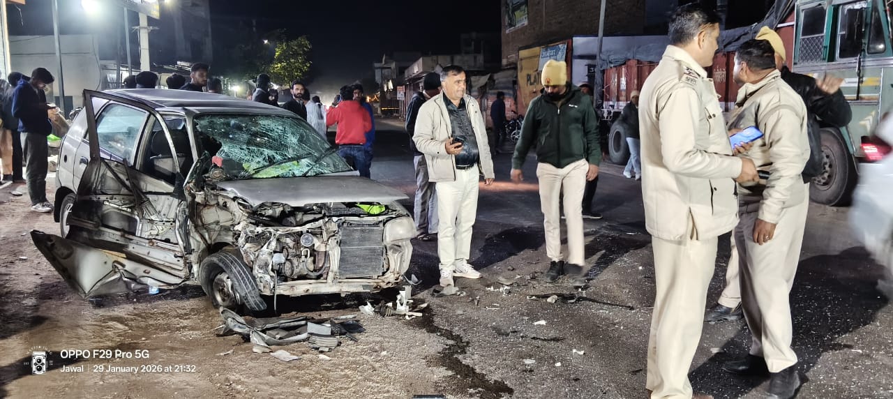 ट्रक व कार के बीच हुई भीषण भिड़त, चार घायल