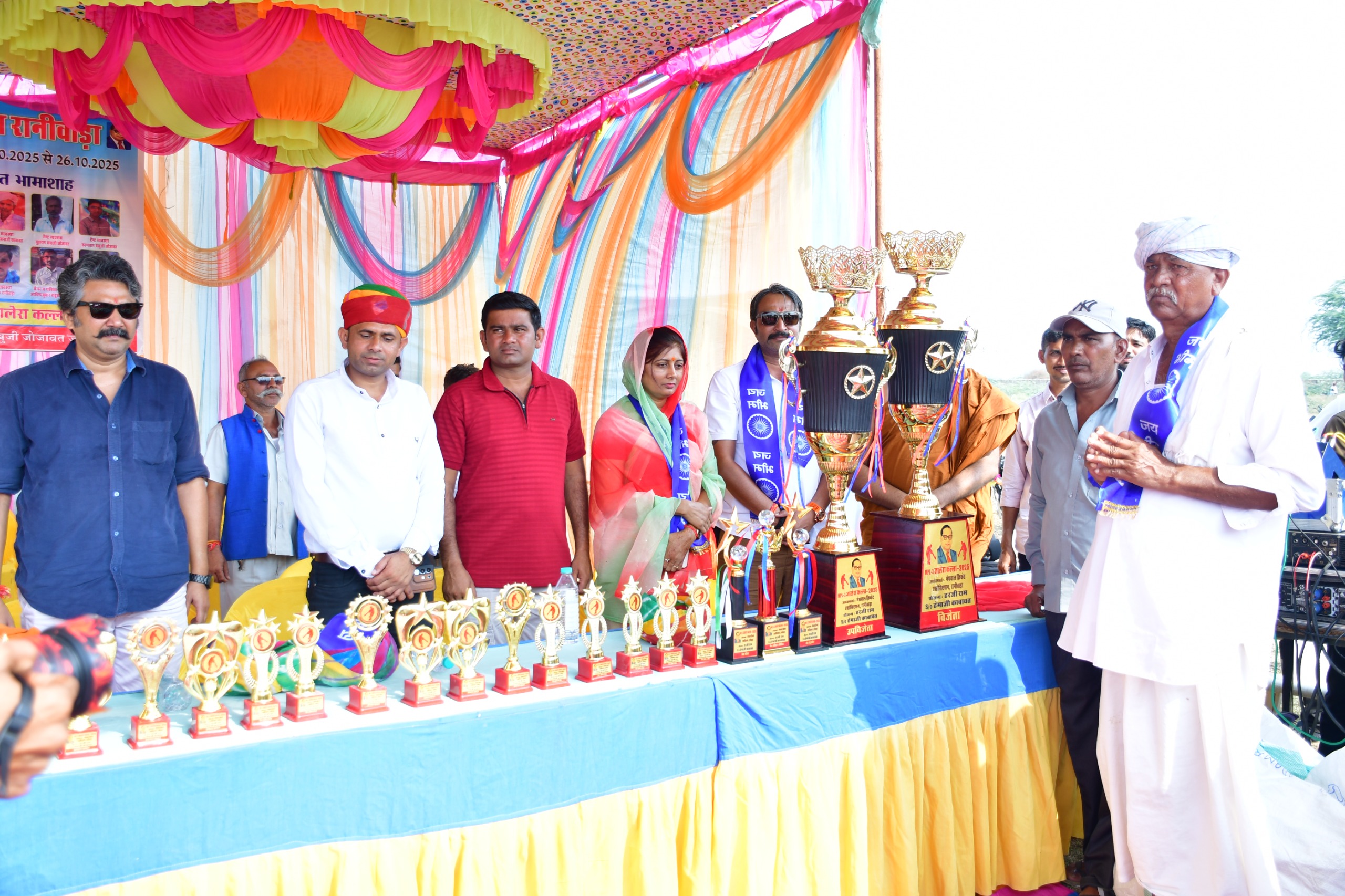 रानीवाड़ा ।(टीकम पाल) – कस्बे के निकटतम स्थित जालेरा कलां श्री आपेश्वर खेल मैदान में मेघवाल समाज द्वारा आयोजित पांच दिवसीय क्रिकेट प्रतियोगिता के तीसरे दिन शुक्रवार को युवा कांग्रेस जिला उपाध्यक्ष कमलेश कुमार कावा मुख्य अतिथि के रूप में उपस्थित रहे। आयोजन कमेटी ने उनका साफ़ा व माला पहनाकर स्वागत किया ! मुख्य अतिथि नेता कांवा ने कहा कि कोई भी व्यक्ति किसी भी क्षेत्र में मजबूत इरादों के साथ अपना लक्ष्य निर्धारित कर आगे बढ़ता है तो उसे कभी भी परिस्थितियां नहीं रोक सकती। उन्होंने युवाओं से खेलों के माध्यम से आगे बढ़कर समाज का नाम रोशन करने का आह्वान किया। उन्होंने कहा कि व्यक्ति को धैर्य व परिश्रम से निश्चित सफलता मिलती है। जीत या हार खेल का हिस्सा है, लेकिन सच्चा खिलाड़ी वह है जो खेल की भावना को सर्वोपरि रखता है ! उसके लिए उसे सकारात्मक भाव के साथ आगे बढऩे की आवश्यकता है। उन्होंने युवाओं से नशे की प्रवृति से दूर रहने, जीवन में अच्छे लोगों से संपर्क रखने, मोबाइल का सदुपयोग करने का आह्वान किया ! क्रिकेट कमेटी अध्यक्ष जितेंद्र कुमार परमार ने बताया कि उक्त प्रतियोगिता में सुणतर समाज की कुल 32 टीमें भाग ले रही हैं। इस दौरान एडवोकेट जानू प्रशांत, अमृत लाल कटारिया, ग्राम विकास अधिकारी जगदीश रोहीण, गोविन्द कुमार पराडिया, कांस्टेबल भरत कुमार, हरजी राम काबावत, जीताराम जोजावत, शैलेश कुमार गर्ग, सत्यपाल खाखरिया, ललीत गोयल ,बिजला राम देवासी, नवज्योति फोटोग्राफर महेन्द्र कुमार देवासी, क्रिकेट कमेटी जितेन्द्र परमार अध्यक्ष,प्रवीण सोलंकी संयोजक, महेन्द्र सोलंकी वरिष्ठ उपाध्यक्ष,नटवर परमार सह संयोजक,महेन्द्र गोयल उपाध्यक्ष,प्रेम परमार सचिव,राजेश रोहीण कोषाध्यक्ष, महेन्द्र परमार कोषाध्यक्ष,यशपाल गोयल सह सचिव, महेन्द्र वाघेला सह सचिव,रमण लाल सोलंकी मीडिया प्रभारी, दीपक डाभी सह मीडिया प्रभारी, सुखदेव सोलंकी सदस्य, नरेश गोयल सदस्य,विक्रम बड़गाँव , सहित काफी संख्या में अन्य क्रिकेट प्रेमी भी मौजूद थे !